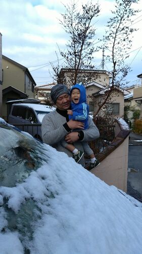 昨日の事ですが。 同じ市内でもツマの実家みたいに市街地は降っていないようで… やっぱりウチは山際の郊外なのね(笑) 朝起きた時点で、すっかり雪予報を忘れていたため外に出てビックリ! セガレちゃんは「ゆきつめたーい」、「ゆきはじめてー」って大はしゃ…