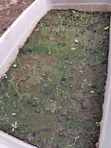 不織布を外してみたら、けっこう発芽が進んでた。 土の状態が今ひとつなので、燻炭を敷きつめておこうと思ったら、残念ながら在庫切れ… 買いにいかなくちゃだよ ニンニクはトウ立ちを始めました。 あと10日くらいかな? 芽を抜いてから10日もしたら掘るよう…