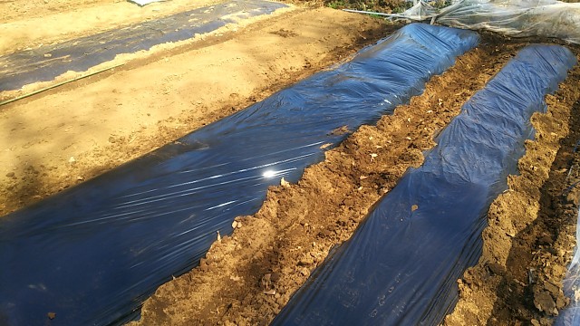 2019-03-18 畑は出来上がり 土 昨日、ツマの実家へお彼岸のご挨拶… の予定だったんだけど、天気予報とスケジュールを見る限りここしかないってタイミング。 事情を話して遅刻させてくれって事で早朝から出動。 残りの畝を2本、仕上げてきた。 超突貫工事だったけど、まずまずの出来。 ちょっと曲がったり、マルチにシワがよっているのはご愛嬌ってことで。 あとは播種と発芽を待つだけなんだけど、なかなかねぇ… 明日からの3月らしからぬ最高気温に期待しましょうか。
