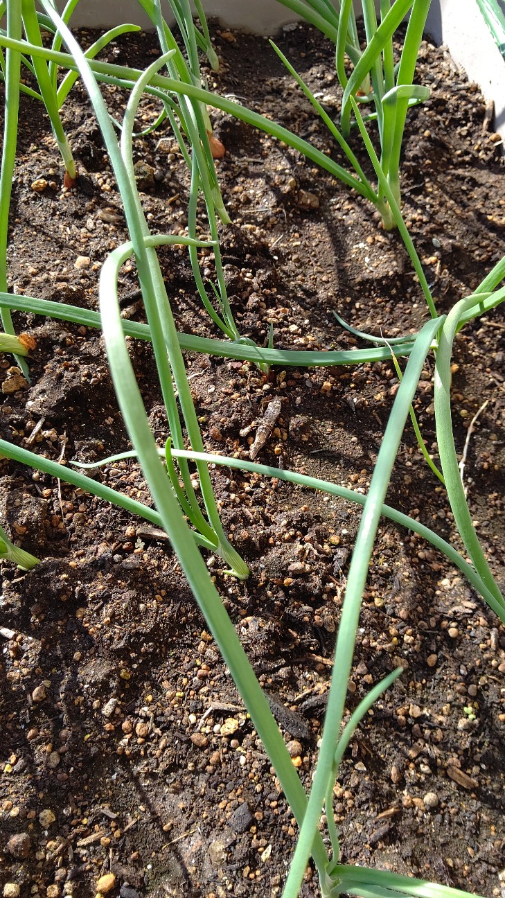 例のくずタマネギのセット球栽培がどうなっているかと言うと、