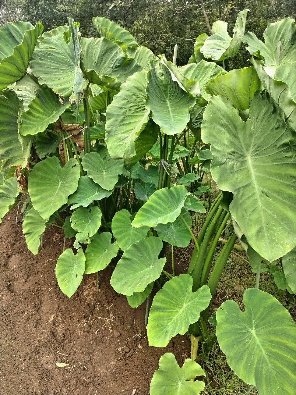 2024-10-03 タケノコ芋に追肥・土寄せ 成長を続けるタケノコ芋。 ただ、先月までの異常な暑さの中、どうにもならず放置気味… それでも、度重なるゲリラ豪雨で2株ほど倒れたのを機会に、軽く土寄せはしてたんだけどね。 そろそろ涼しくなったし、収穫まであと2ヶ月ほどって今のうちに、ガッツリと追肥と土寄せを行う。 しかし、この程度… とにかく、この時期のこの周辺の土は、とにかく重くて(T_T) まだまだ芋は肥大しているようだし、何回かに分けてでも土を上げていかないと。 今年もデッカいヤツを狙っていきますよ。